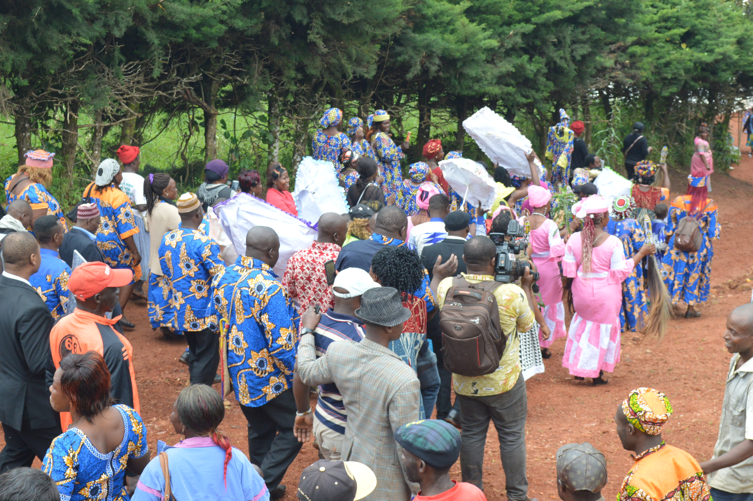 Septembre 2018: Cortège de retour de la morgue; descente vers la grande cour de la chefferie Metap.